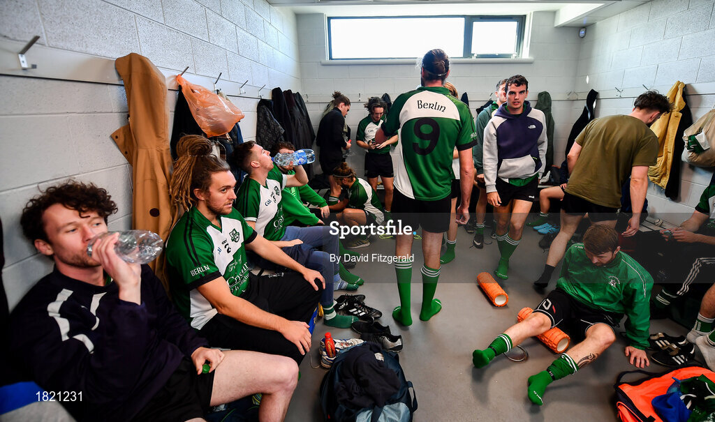 26 October 2019; Berlin GAA players get ready prior to the AIB Leinster Club Junior Football Championship Round 1 match between Berlin GAA and Kenagh GAA at GAA Centre of Excellence at Abbottstown, Dublin. Photo by David Fitzgerald/Sportsfile