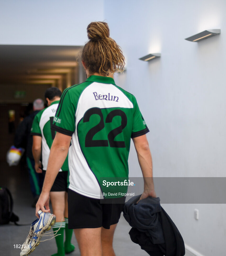 26 October 2019; Joshua Bollmeyer of Berlin GAA takes to the field prior to the AIB Leinster Club Junior Football Championship Round 1 match between Berlin GAA and Kenagh GAA at GAA Centre of Excellence at Abbottstown, Dublin. Photo by David Fitzgerald/Sportsfile