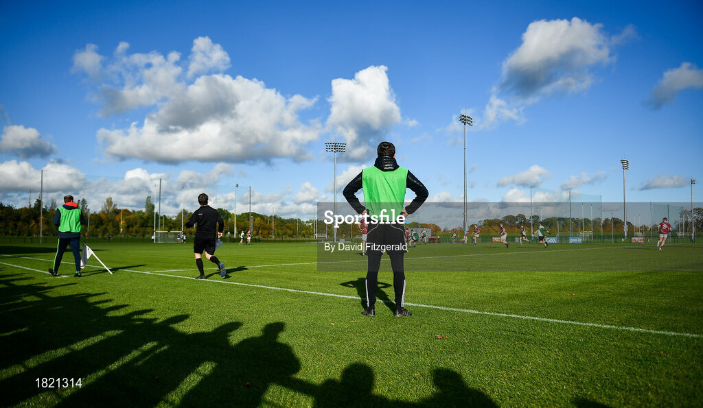 26 October 2019; Berlin GAA manager Tye Adamson looks on during the AIB Leinster Club Junior Football Championship Round 1 match between Berlin GAA and Kenagh GAA at GAA Centre of Excellence at Abbottstown, Dublin. Photo by David Fitzgerald/Sportsfile