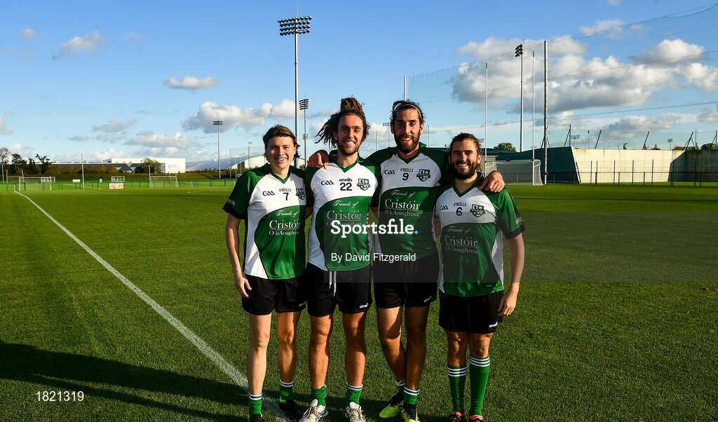 26 October 2019; Berlin GAA who are all from Australia, from left, Jan Meinecke, Joshua Bollmeyer, Rowan Miegel and Mitchell New following the AIB Leinster Club Junior Football Championship Round 1 match between Berlin GAA and Kenagh GAA at GAA Centre of Excellence at Abbottstown, Dublin. Photo by David Fitzgerald/Sportsfile