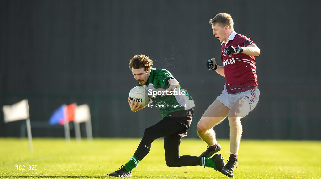 26 October 2019; Darren Coy of Berlin GAA in action against Ronan Hughes of Kenagh GAA during the AIB Leinster Club Junior Football Championship Round 1 match between Berlin GAA and Kenagh GAA at GAA Centre of Excellence at Abbottstown, Dublin. Photo by David Fitzgerald/Sportsfile