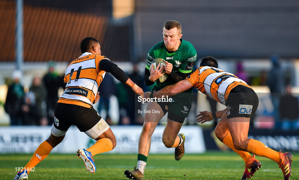 26 October 2019; Stephen Fitzgerald of Connacht is tackled by Anthony Volmink, left, and Dries Swanepoel of Toyota Cheetahs during the Guinness PRO14 Round 4 match between Connacht and Toyota Cheetahs at The Sportsground in Galway. Photo by Seb Daly/Sportsfile