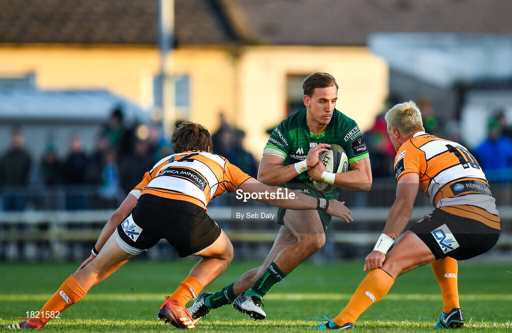 26 October 2019; John Porch of Connacht in action against Benhard Janse van Rensburg, left, and Tian Schoeman of Toyota Cheetahs during the Guinness PRO14 Round 4 match between Connacht and Toyota Cheetahs at The Sportsground in Galway. Photo by Seb Daly/Sportsfile