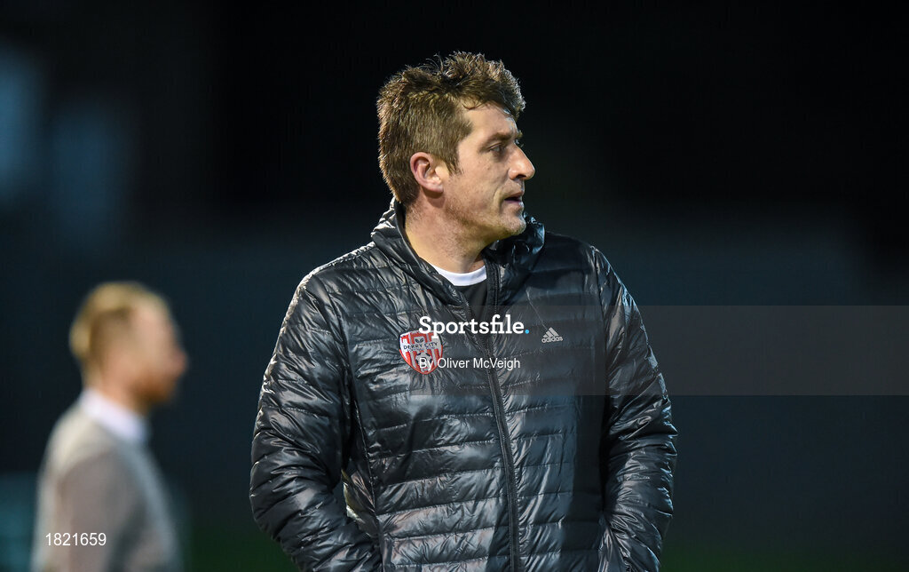 22 October 2019; Derry City Manager Declan Devine during the SSE Airtricity League Premier Division match between Derry City and St Patrick's Athletic at Ryan McBride Brandywell Stadium in Derry. Photo by Oliver McVeigh/Sportsfile