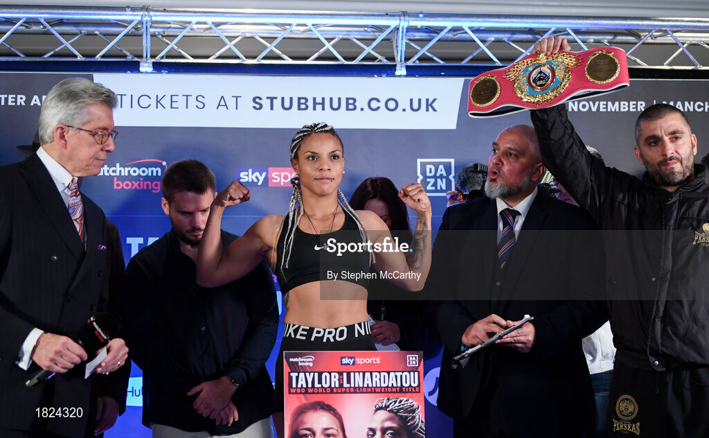1 November 2019; Christina Linardatou weighs-in at the Radisson Blu Edwardian Hotel in Manchester, England, ahead of her WBO Women's Super-Lightweight World title fight against Katie Taylor on Saturday night at the Manchester Arena. Photo by Stephen McCarthy/Sportsfile