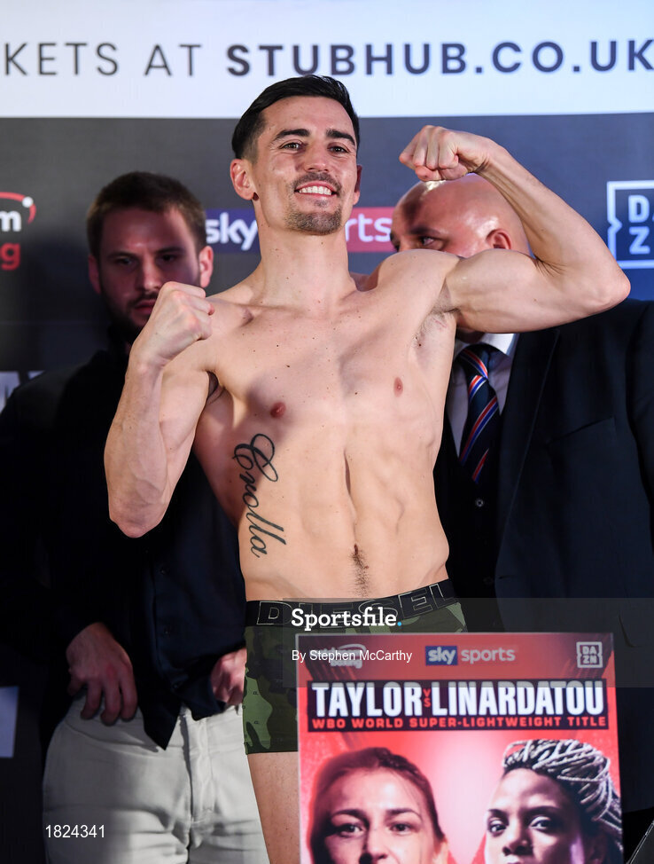1 November 2019; Anthony Crolla weighs-in at the Radisson Blu Edwardian Hotel in Manchester, England, ahead of his vacant WBA Continental Lightweight Title fight against Frank Urquiaga on Saturday night at the Manchester Arena. Photo by Stephen McCarthy/Sportsfile