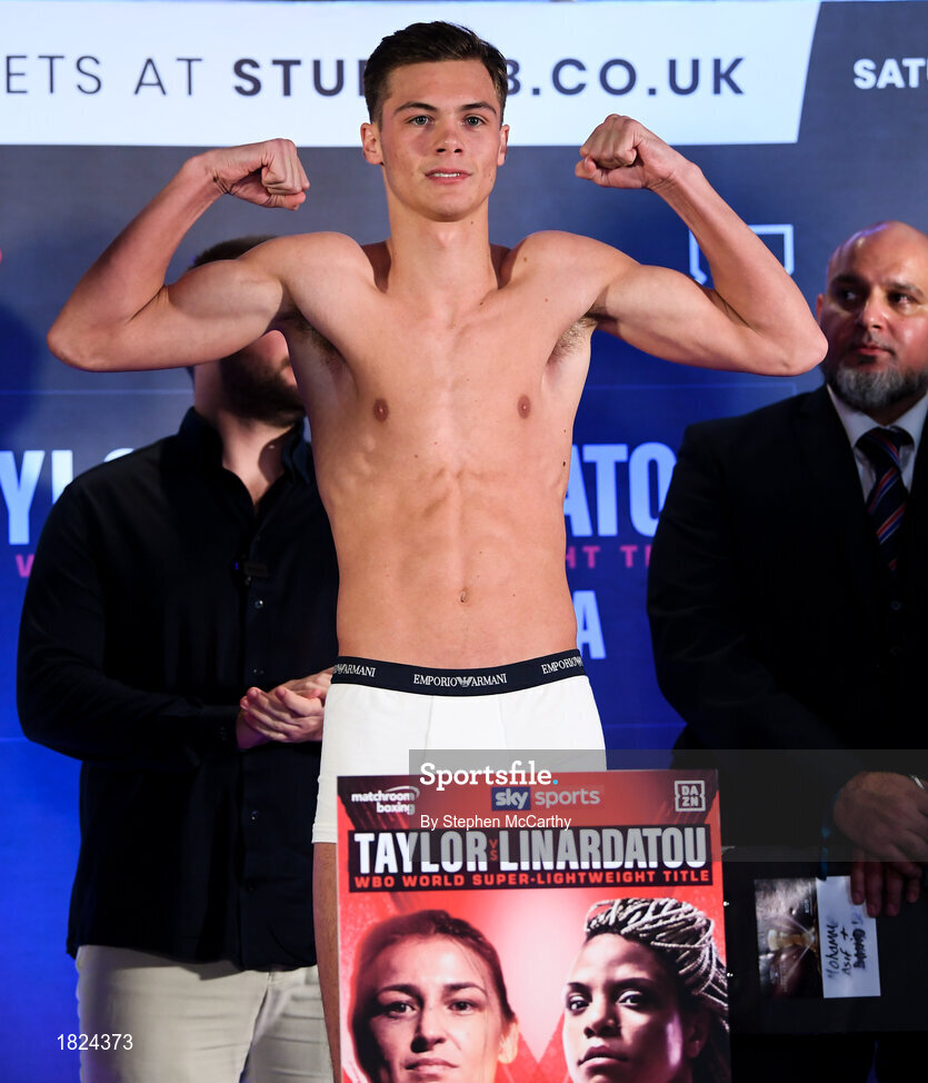 1 November 2019; Hopey Price weighs-in at the Radisson Blu Edwardian Hotel in Manchester, England, ahead of his Super Bantamweight fight against Joel Sanchez on Saturday night at the Manchester Arena. Photo by Stephen McCarthy/Sportsfile