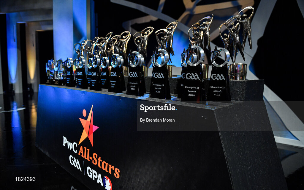 1 November 2019; Awards are seen in the main auditorium prior to the PwC All-Stars 2019 at the Convention Centre in Dublin. Photo by Brendan Moran/Sportsfile