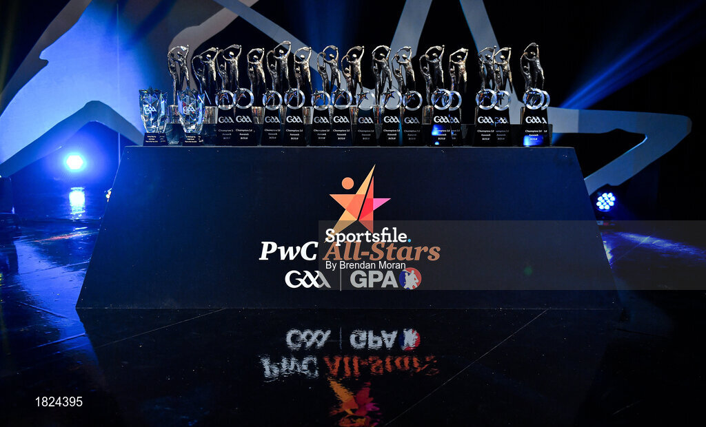 1 November 2019; Awards are seen in the main auditorium prior to the PwC All-Stars 2019 at the Convention Centre in Dublin. Photo by Brendan Moran/Sportsfile