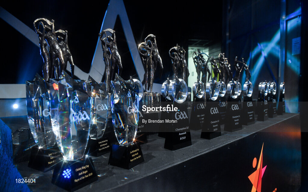 1 November 2019; (EDITOR'S NOTE: This image was created using a starburst filter) Awards are seen in the main auditorium prior to the PwC GAA GPA All-Stars 2019 at the Convention Centre in Dublin. Photo by Brendan Moran/Sportsfile