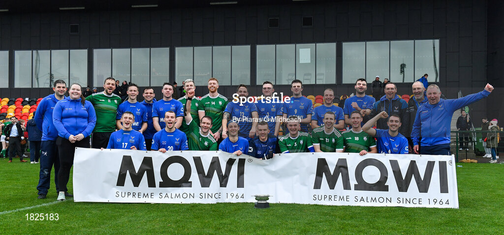 2 November 2019; Scotland players and staff celebrate after the Senior Hurling Shinty International 2019 match between Ireland and Scotland at the GAA National Games Development Centre in Abbotstown, Dublin. Photo by Piaras Ó Mídheach/Sportsfile