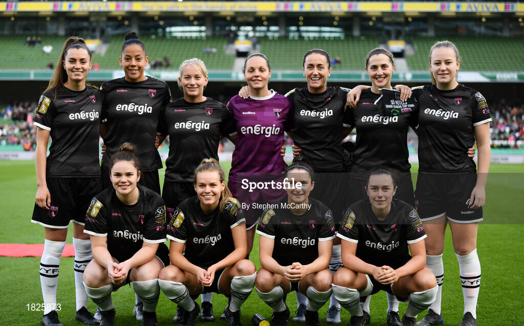 3 November 2019; The Wexford Youths team prior to the Só Hotels FAI Women's Cup Final between Wexford Youths and Peamount United at the Aviva Stadium in Dublin. Photo by Stephen McCarthy/Sportsfile