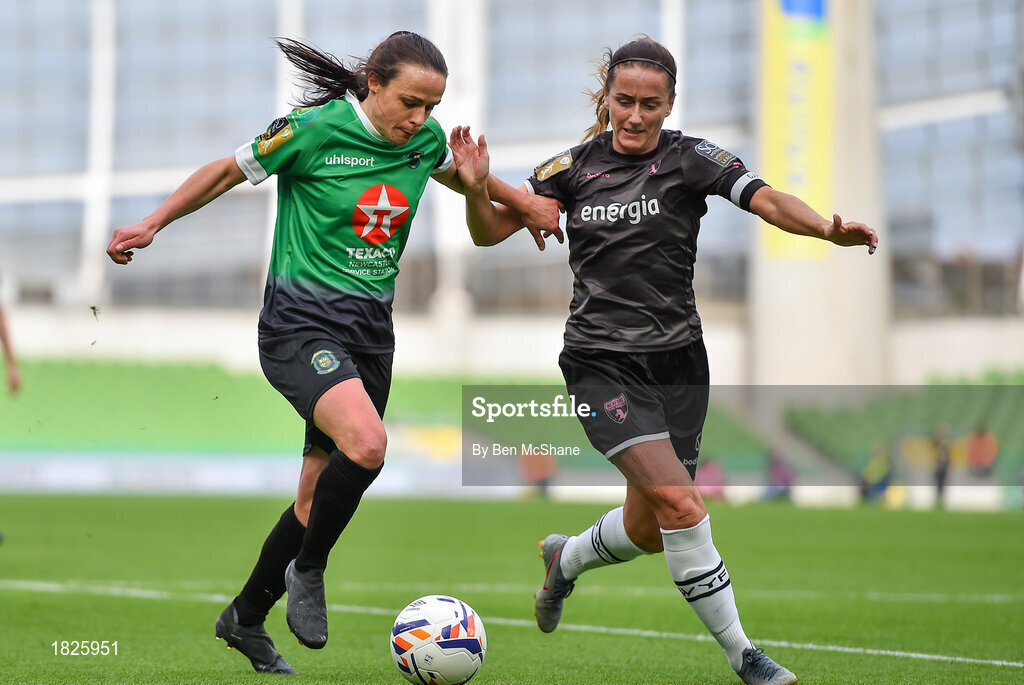 3 November 2019; Áine O'Gorman of Peamount United in action against Kylie Murphy of Wexford Youths during the Só Hotels FAI Women's Cup Final between Wexford Youths and Peamount United at the Aviva Stadium in Dublin. Photo by Ben McShane/Sportsfile