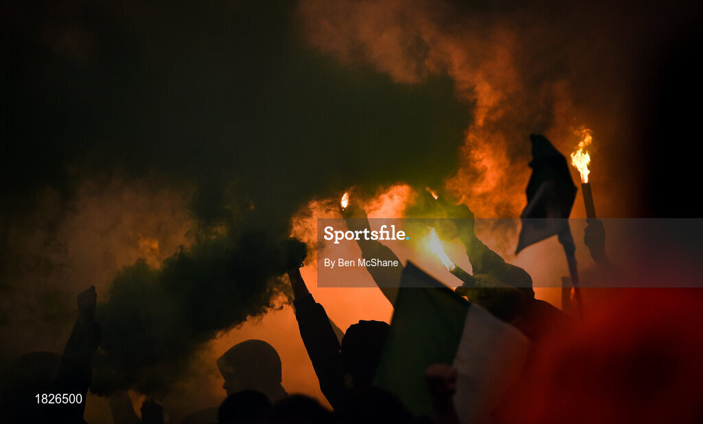 3 November 2019; Shamrock Rovers supporters during the extra.ie FAI Cup Final between Dundalk and Shamrock Rovers at the Aviva Stadium in Dublin. Photo by Ben McShane/Sportsfile