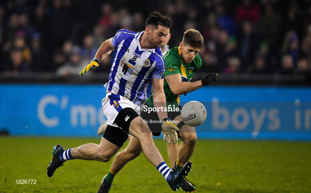 3 November 2019; Michael Darragh MacAuley of Ballyboden St Enda's in action against Peter Quinn of Thomas Davis during the Dublin County Senior Club Football Championship Final match between Thomas Davis and Ballyboden St Enda's at Parnell Park in Dublin. Photo by Brendan Moran/Sportsfile