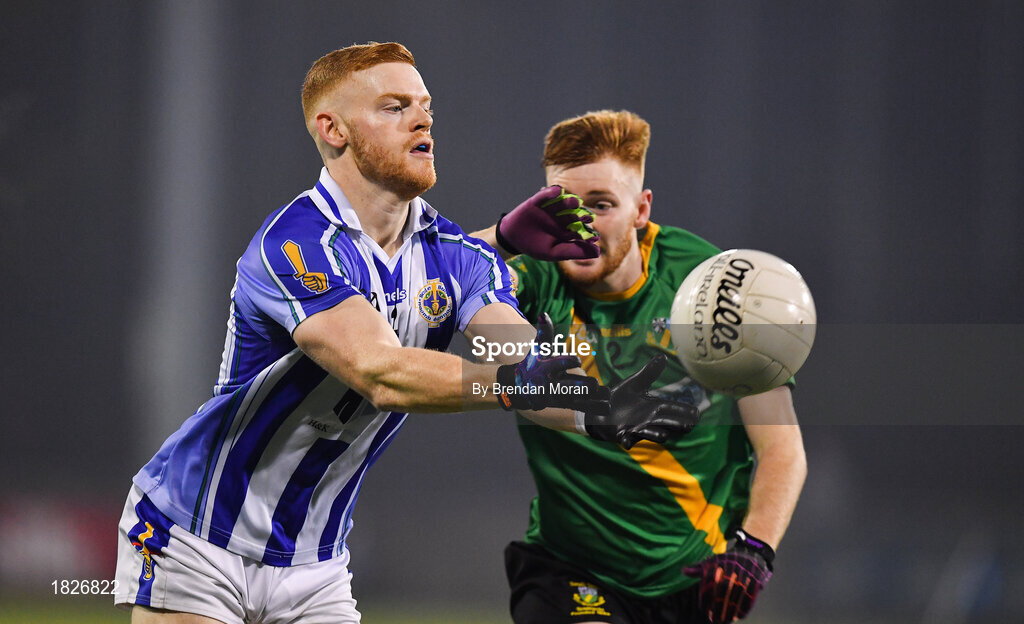 3 November 2019; Alan Flood of Ballyboden St Enda's in action against Sean Kennedy of Thomas Davis during the Dublin County Senior Club Football Championship Final match between Thomas Davis and Ballyboden St Enda's at Parnell Park in Dublin. Photo by Brendan Moran/Sportsfile