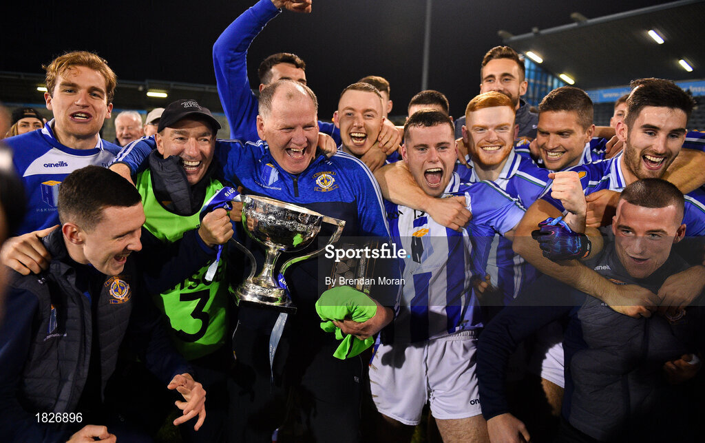 3 November 2019; Ballyboden St Enda's players and officials celebrate with the cup after the Dublin County Senior Club Football Championship Final match between Thomas Davis and Ballyboden St Enda's at Parnell Park in Dublin. Photo by Brendan Moran/Sportsfile