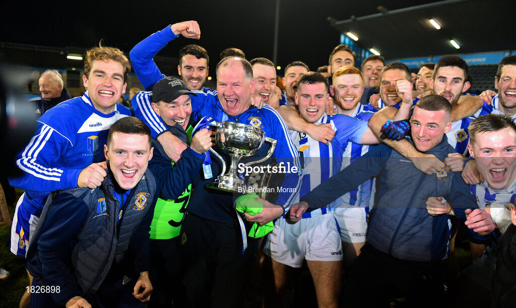 3 November 2019; Ballyboden St Enda's players and officials celebrate with the cup after the Dublin County Senior Club Football Championship Final match between Thomas Davis and Ballyboden St Enda's at Parnell Park in Dublin. Photo by Brendan Moran/Sportsfile