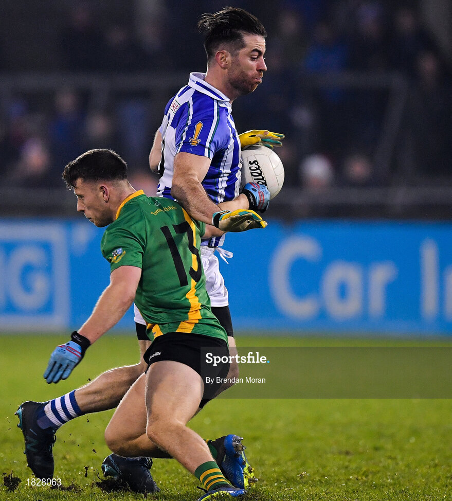 3 November 2019; Michael Darragh MacAuley of Ballyboden St Enda's is tackled by David Keogh of Thomas Davis during the Dublin County Senior Club Football Championship Final match between Thomas Davis and Ballyboden St Enda's at Parnell Park in Dublin. Photo by Brendan Moran/Sportsfile