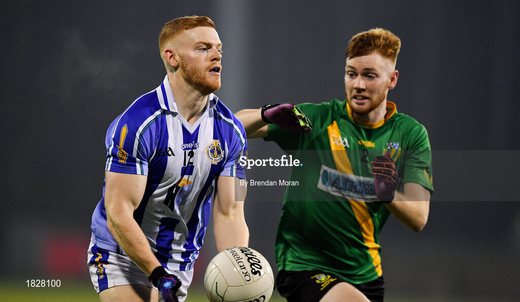 3 November 2019; Alan Flood of Ballyboden St Enda's in action against Sean Kennedy of Thomas Davis during the Dublin County Senior Club Football Championship Final match between Thomas Davis and Ballyboden St Enda's at Parnell Park in Dublin. Photo by Brendan Moran/Sportsfile