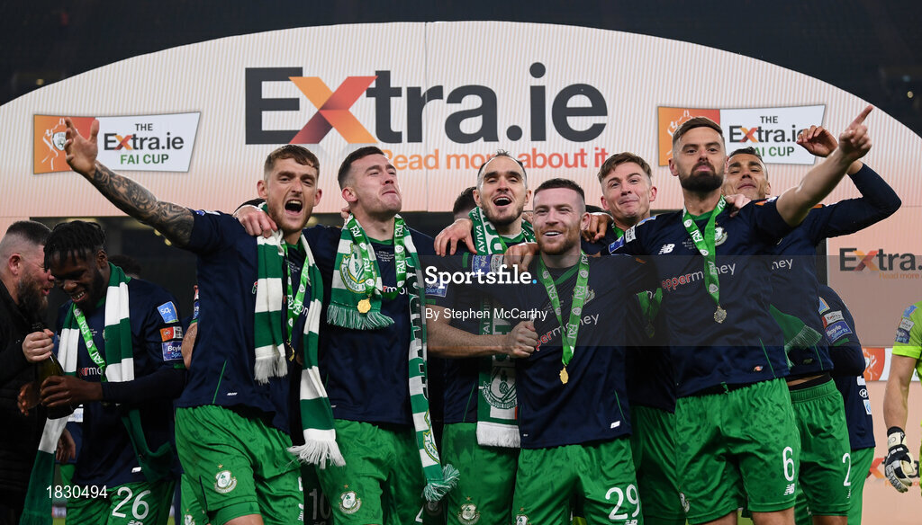 3 November 2019; Shamrock Rovers players celebrate following the extra.ie FAI Cup Final between Dundalk and Shamrock Rovers at the Aviva Stadium in Dublin. Photo by Stephen McCarthy/Sportsfile