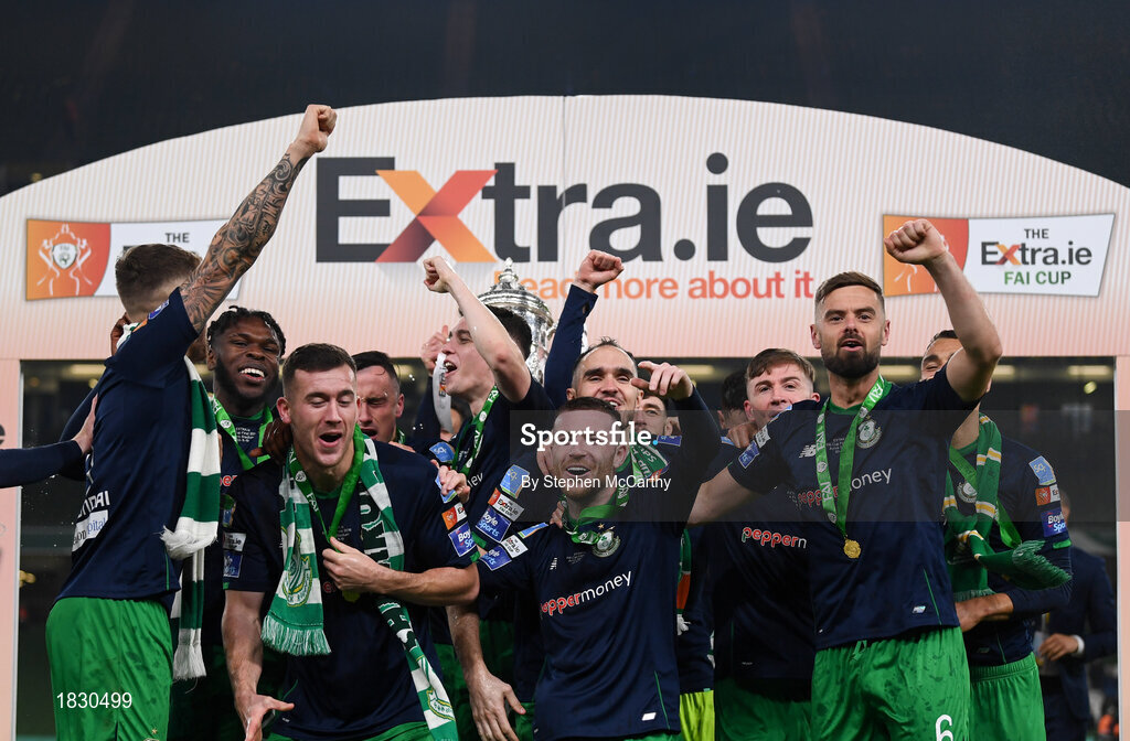 3 November 2019; Shamrock Rovers players celebrate following the extra.ie FAI Cup Final between Dundalk and Shamrock Rovers at the Aviva Stadium in Dublin. Photo by Stephen McCarthy/Sportsfile