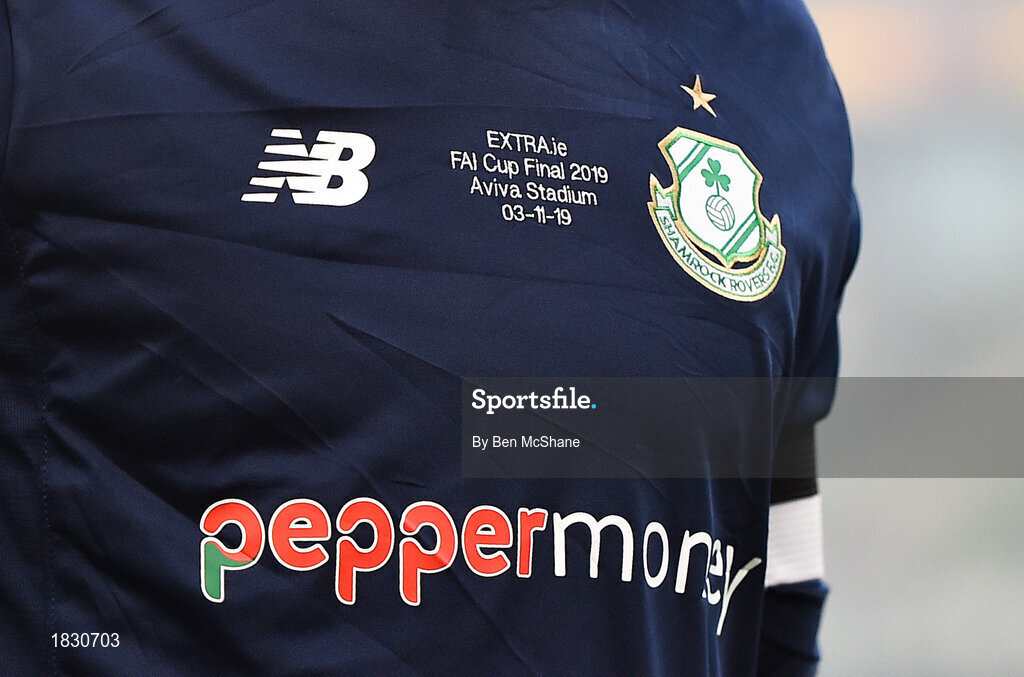 3 November 2019; A detailed view of the Shamrock Rovers jersey ahead of the extra.ie FAI Cup Final between Dundalk and Shamrock Rovers at the Aviva Stadium in Dublin. Photo by Ben McShane/Sportsfile