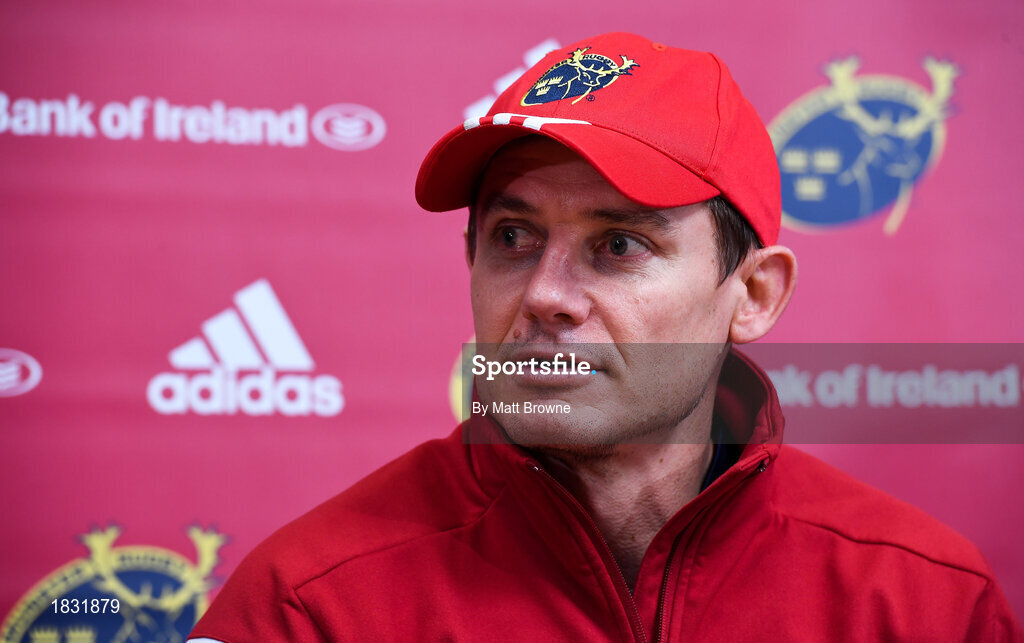 5 November 2019; Munster Senior Coach Stephen Larkham during a Munster Rugby squad press conference at University of Limerick in Limerick. Photo by Matt Browne/Sportsfile