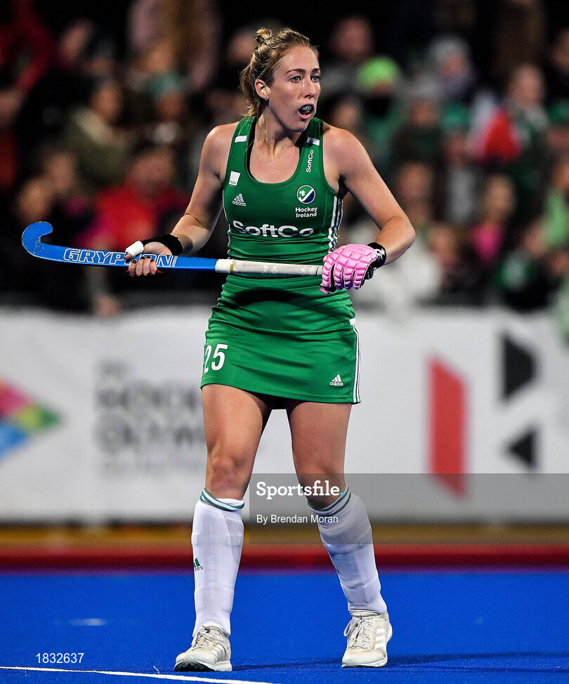 3 November 2019; Sarah Hawkshaw of Ireland during the FIH Women's Olympic Qualifier match between Ireland and Canada at Energia Park in Dublin. Photo by Brendan Moran/Sportsfile