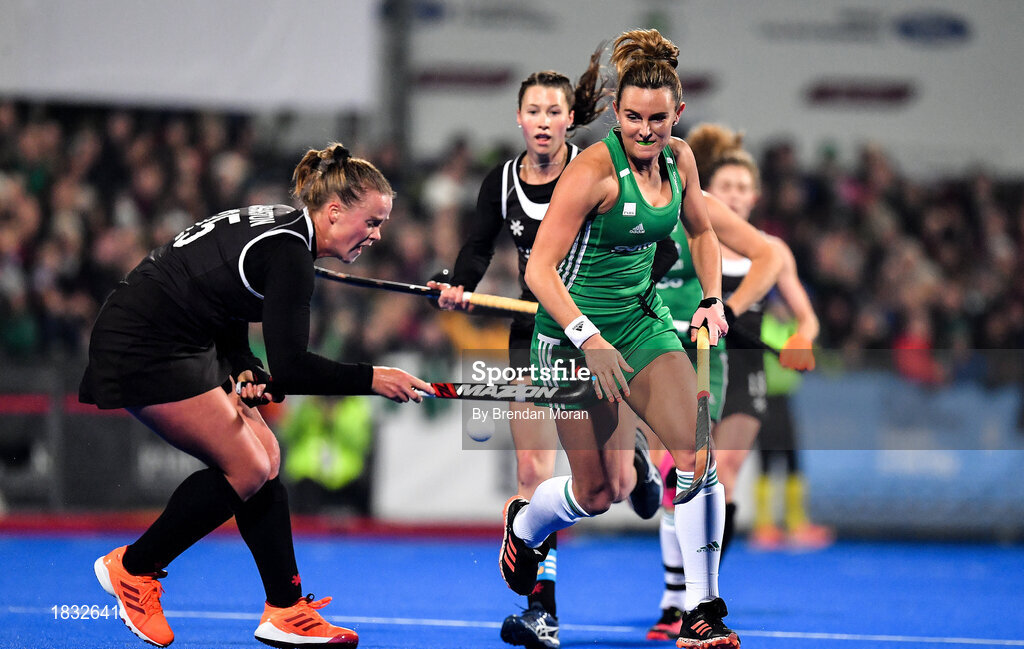 3 November 2019; Nikki Evans of Ireland in action against Shanlee Johnston of Canada during the FIH Women's Olympic Qualifier match between Ireland and Canada at Energia Park in Dublin. Photo by Brendan Moran/Sportsfile