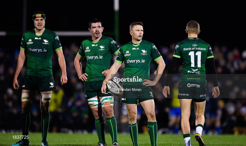 8 November 2019; Connacht players, including Jack Carty, 2nd from right, look on during the Guinness PRO14 Round 6 match between Connacht and Leinster in the Sportsground in Galway. Photo by Brendan Moran/Sportsfile