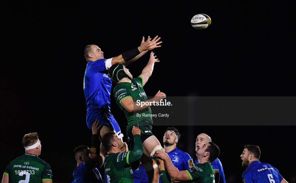 8 November 2019; Rhys Ruddock of Leinster in action against Joe Maksymiw of Connacht during the Guinness PRO14 Round 6 match between Connacht and Leinster at the Sportsground in Galway. Photo by Ramsey Cardy/Sportsfile