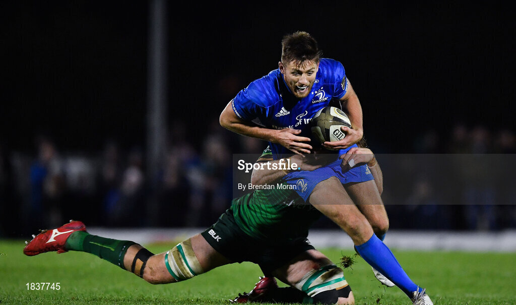 8 November 2019; Ross Byrne of Leinster is tackled by Cillian Gallagher of Connacht during the Guinness PRO14 Round 6 match between Connacht and Leinster in the Sportsground in Galway. Photo by Brendan Moran/Sportsfile