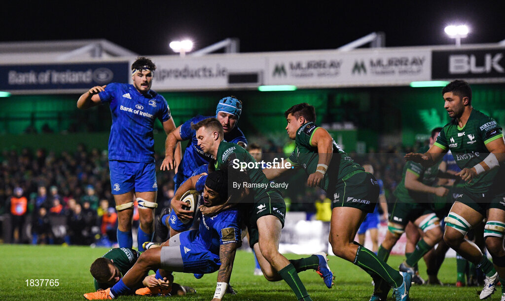 8 November 2019; Joe Tomane of Leinster is tackled by Jack Carty of Connacht during the Guinness PRO14 Round 6 match between Connacht and Leinster at the Sportsground in Galway. Photo by Ramsey Cardy/Sportsfile