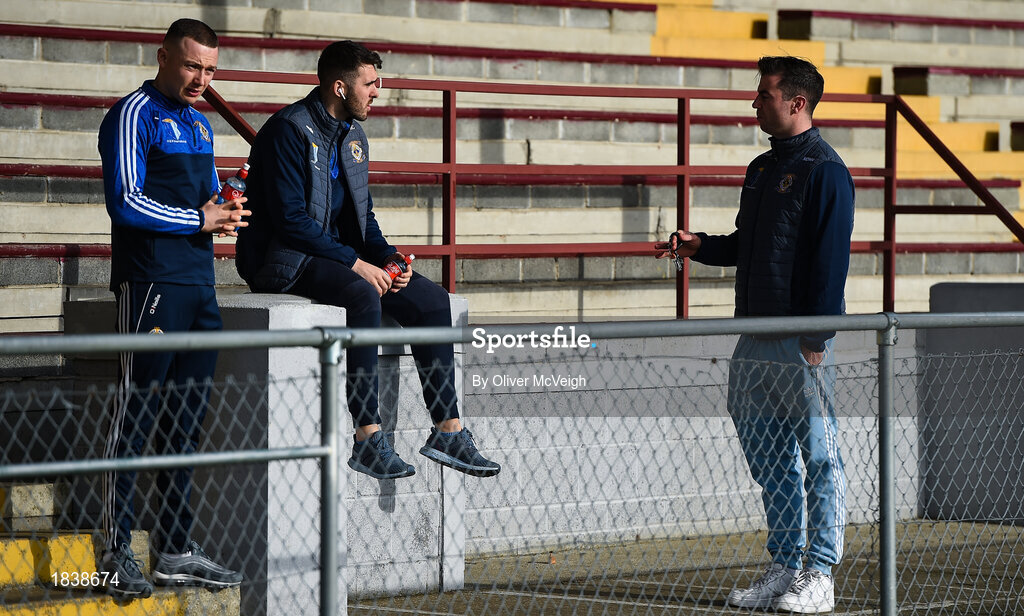 10 November 2019; Cathal Flaherty, Ronan Cleary and Michael Darragh Macauley of Ballyboden St Enda's before the AIB Leinster GAA Football Senior Club Championship Quarter-Final match between Newtown Blues and Ballyboden St Enda's at the Gaelic Grounds in Drogheda, Co Louth. Photo by Oliver McVeigh/Sportsfile
