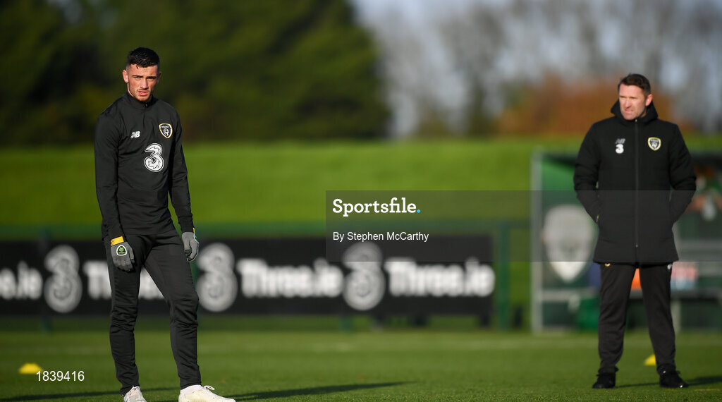 11 November 2019; Troy Parrott and Republic of Ireland assistant coach Robbie Keane during a Republic of Ireland training session at the FAI National Training Centre in Abbotstown, Dublin. Photo by Stephen McCarthy/Sportsfile