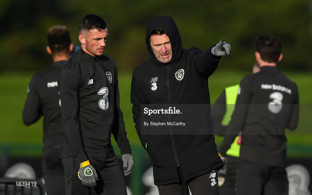 11 November 2019; Republic of Ireland assistant coach Robbie Keane and Troy Parrott during a Republic of Ireland training session at the FAI National Training Centre in Abbotstown, Dublin. Photo by Stephen McCarthy/Sportsfile