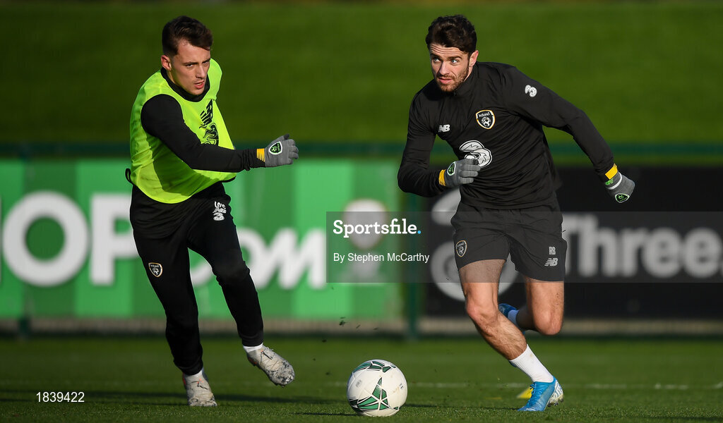 11 November 2019; Robbie Brady, right, and Lee O'Connor during a Republic of Ireland training session at the FAI National Training Centre in Abbotstown, Dublin. Photo by Stephen McCarthy/Sportsfile