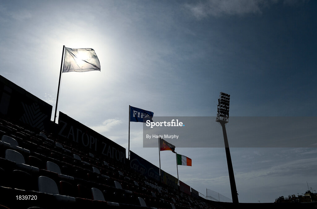 12 November 2019; The flags are seen prior to the UEFA Women's 2021 European Championships Qualifier - Group I match between Greece and Republic of Ireland at Nea Smyrni Stadium in Athens, Greece. Photo by Harry Murphy/Sportsfile
