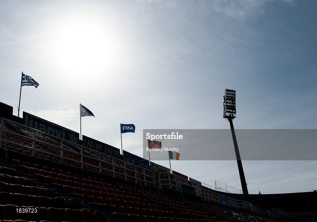 12 November 2019; The flags are seen prior to the UEFA Women's 2021 European Championships Qualifier - Group I match between Greece and Republic of Ireland at Nea Smyrni Stadium in Athens, Greece. Photo by Harry Murphy/Sportsfile