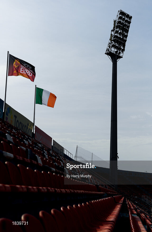 12 November 2019; The flags are seen prior to the UEFA Women's 2021 European Championships Qualifier - Group I match between Greece and Republic of Ireland at Nea Smyrni Stadium in Athens, Greece. Photo by Harry Murphy/Sportsfile