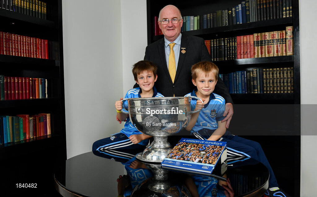12 November 2019; In attendance at the Launch of A Season of Sundays 2019 at Croke Park in Dublin, is Uachtarán Cumann Lúthchleas Gael, John Horan, Joe McNamara, aged 9, left, and Patrick McNamara, aged 7, from Harold's Cross, Dublin. Photo by Sam Barnes/Sportsfile