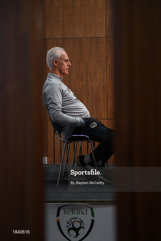 13 November 2019; Republic of Ireland manager Mick McCarthy during a Republic of Ireland press conference at the FAI National Training Centre in Abbotstown, Dublin. Photo by Stephen McCarthy/Sportsfile