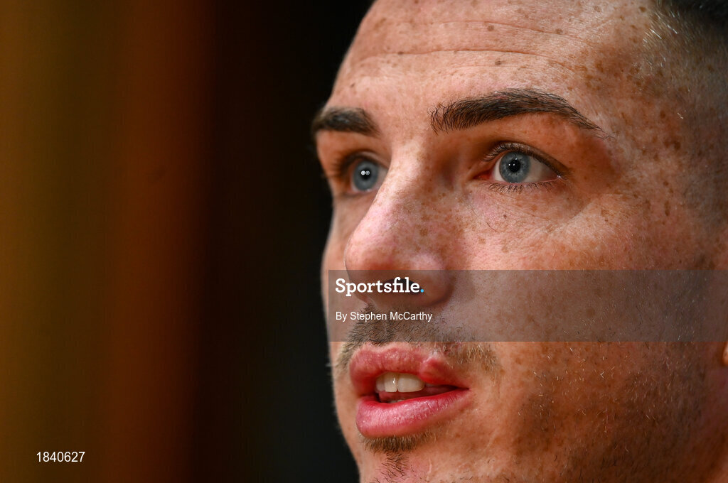 13 November 2019; Ciaran Clark during a Republic of Ireland press conference at the FAI National Training Centre in Abbotstown, Dublin. Photo by Stephen McCarthy/Sportsfile