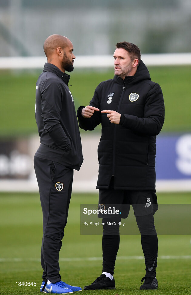 13 November 2019; Republic of Ireland assistant coach Robbie Keane, right, and David McGoldrick during a Republic of Ireland training session at the FAI National Training Centre in Abbotstown, Dublin. Photo by Stephen McCarthy/Sportsfile