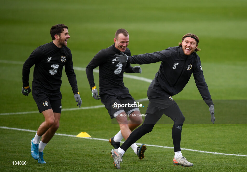 13 November 2019; Republic of Ireland players, from left, Robbie Brady, Glenn Whelan and Jeff Hendrick during a Republic of Ireland training session at the FAI National Training Centre in Abbotstown, Dublin. Photo by Stephen McCarthy/Sportsfile
