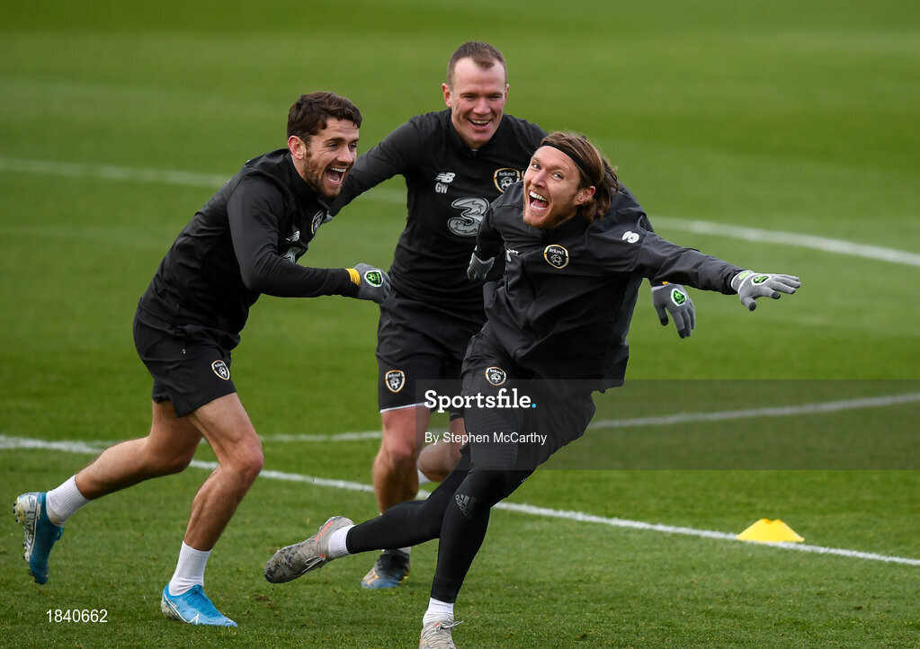 13 November 2019; Republic of Ireland players, from left, Robbie Brady, Glenn Whelan and Jeff Hendrick during a Republic of Ireland training session at the FAI National Training Centre in Abbotstown, Dublin. Photo by Stephen McCarthy/Sportsfile
