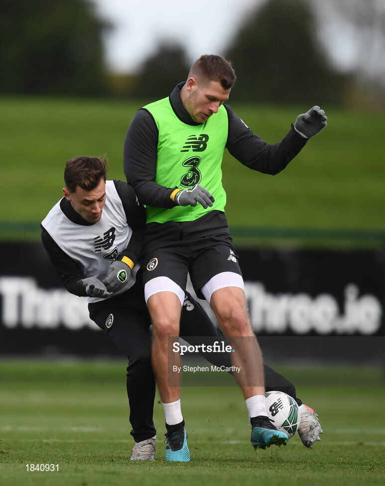 13 November 2019; James Collins and Lee O'Connor, left, during a Republic of Ireland training session at the FAI National Training Centre in Abbotstown, Dublin. Photo by Stephen McCarthy/Sportsfile