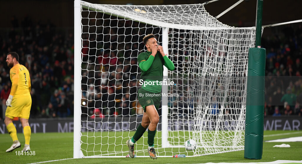14 November 2019; Callum Robinson of Republic of Ireland celebrates after scoring his side's third goal during the International Friendly match between Republic of Ireland and New Zealand at the Aviva Stadium in Dublin. Photo by Stephen McCarthy/Sportsfile