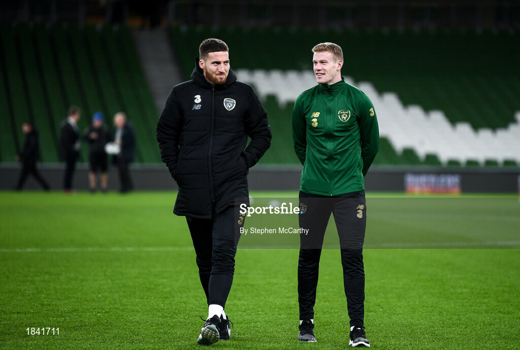 14 November 2019; Matt Doherty and James McClean of Republic of Ireland prior to the International Friendly match between Republic of Ireland and New Zealand at the Aviva Stadium in Dublin. Photo by Stephen McCarthy/Sportsfile